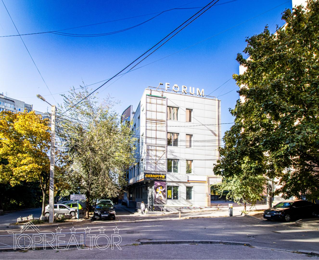 Продам приміщення на 1-му поверсі загальною площею 150 м² та приміщення на 2-му поверсі загальною площею 195 м², вхід через центральні сходи. Будівля офісного центру Forum сучасної будівлі з високими стелями та залізобетонними перекриттями, опалення – власна котельня, є гостьова парковка у дворі. Також можна придбати приміщення на верхніх поверхах.